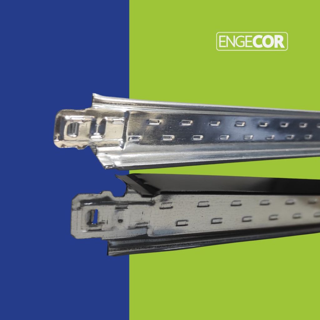 metálico utilizado na construção a seco, especialmente em sistemas de drywall e forros. Fabricado em aço galvanizado, garante resistência, durabilidade e estabilidade à estrutura. É responsável por dar suporte e alinhamento às placas, facilitando a instalação e proporcionando um acabamento seguro e profissional em projetos residenciais, comerciais e industriais.
